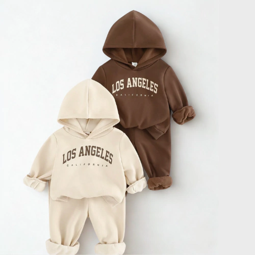 - ✨ Diseño único y encantador: Su diseño moderno y detalles especiales: estampado LA y su capucha, harán que tu bebé destaque con un look lleno de estilo y frescura.