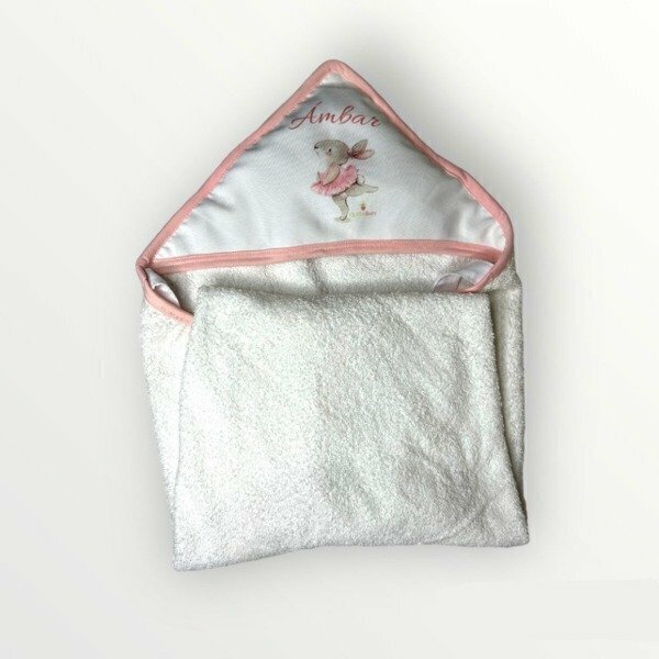 Podés elegir entre el delicado estampado de conejo o solicitar en las notas que prefieras un modelo en gabardina estampada, ¡te enviaremos opciones exclusivas! Además, ofrecemos la posibilidad de personalizar tu toallón con el nombre bordado del bebé; solo indicá el nombre y el color deseado en las notas.