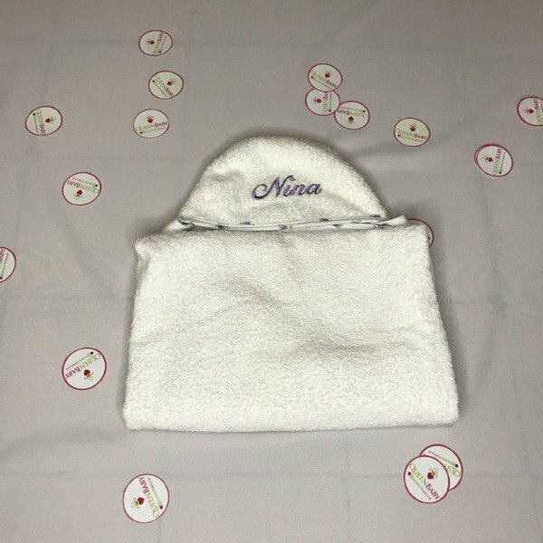 Medidas aproximadas: 1m x 80cm + 18 cm capucha Material: Toalla doble felpa 100% algodón